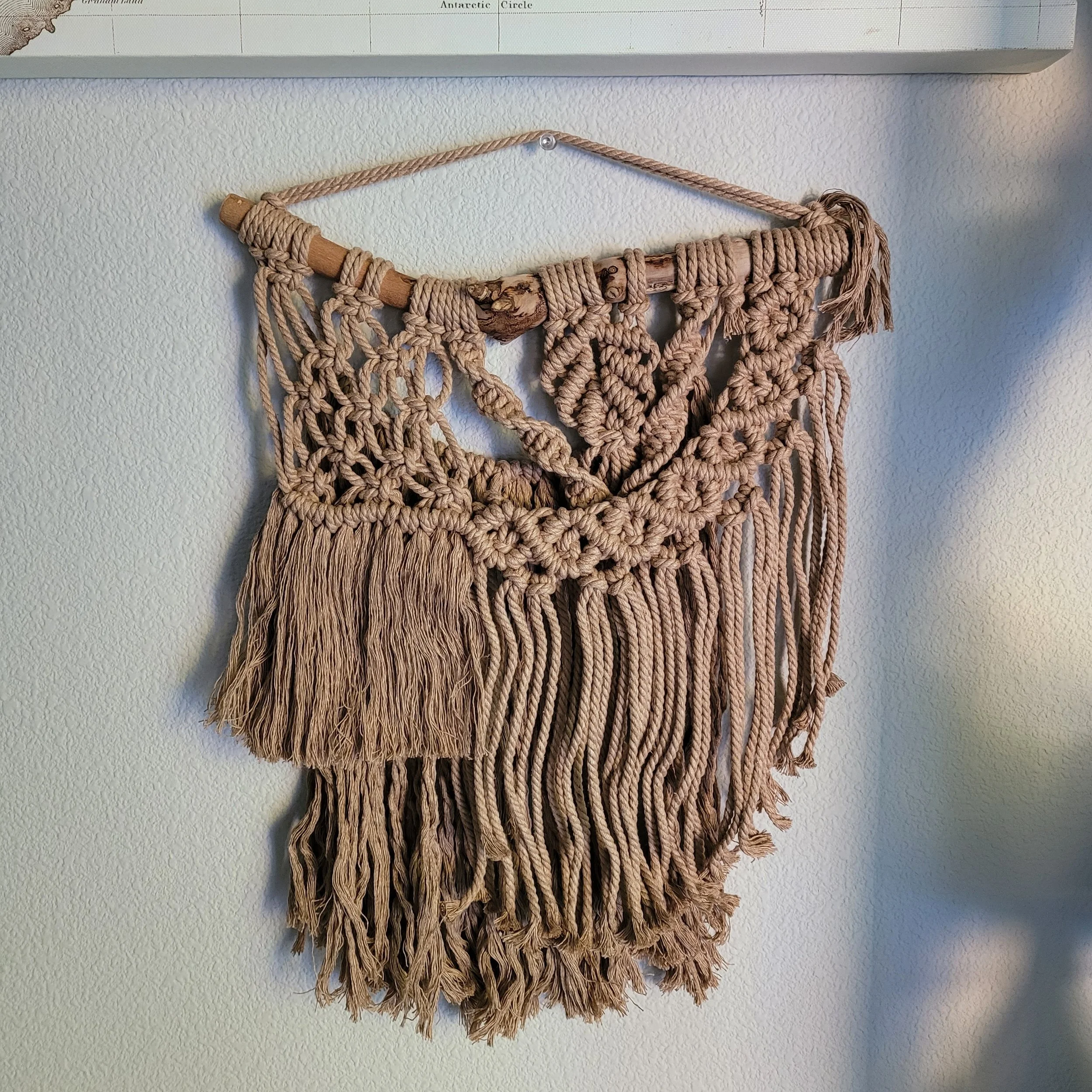 Handmade macrame wall hanging, 12 inch wide x 16.5 inch length.